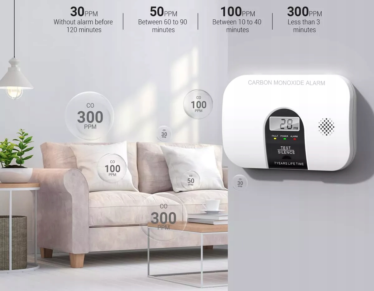 Детектор чадного газу - Датчик центрального опалення з РК-дисплеєм - БАТАРЕЯ НА 7 РОКІВ - СЕРТИФІКАЦІЯ