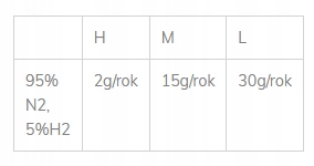 - H M L 95% N2, 5% H2 2 г/рік 15 г/рік 30 г/рік