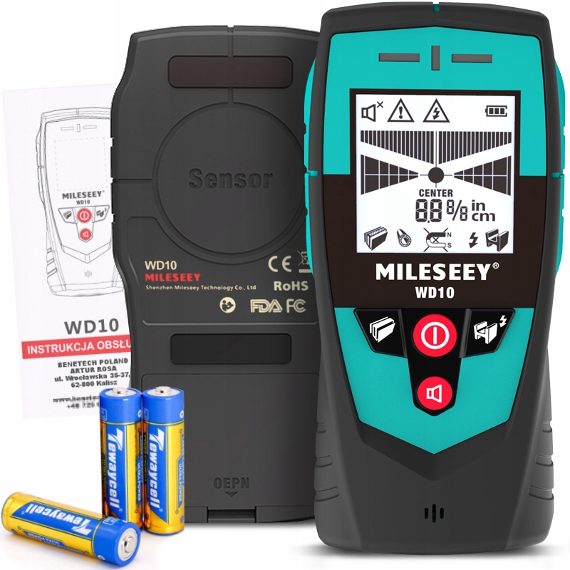 Детектор для виявлення металів (магнітних і немагнітних), дерев’яних конструкцій, проводів під напругою, які не видно неозброєним оком і знаходяться в стіні, підлозі чи стеля .