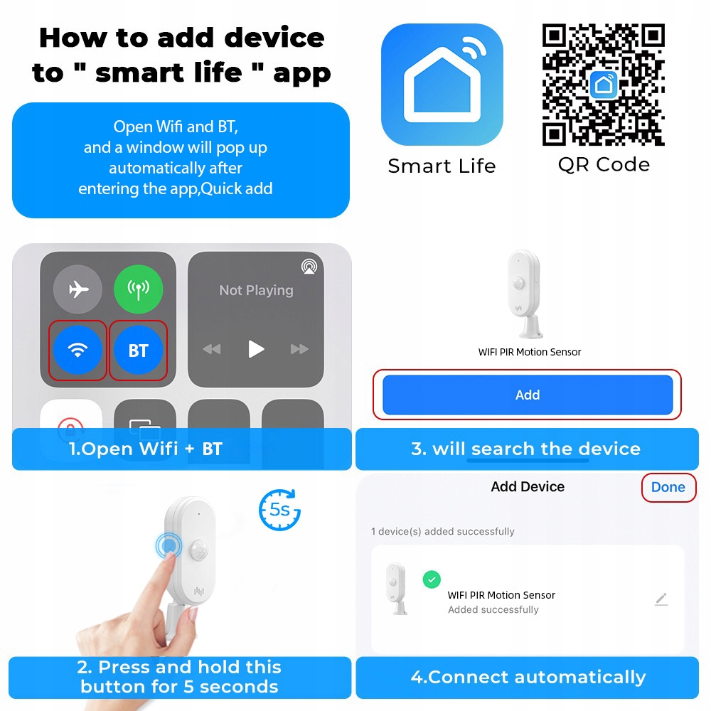 1. Завдяки Wi -Fi Connecting, він надсилає натискання сповіщень у реальному часі на смартфон, що дозволяє інформувати про будь -який несанкціонований запис. Крім того, датчик може легко інтегруватися з IP -камерами, записуючи матеріал від потенційних зловмисників до пізнішого огляду. 4 Виберіть режим, який відповідає вашим потребам та забезпечуйте мир у різних ситуаціях.