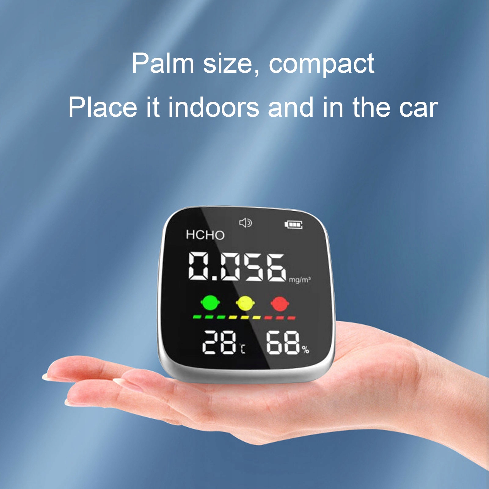 3. Компактний і портативний: завдяки невеликому розміру та мінімалістичному дизайну цей тестер HCHO ідеально підходить як для домашнього, так і для офісного використання, завдяки чому його легко носити та контролювати ваше оточення в будь-який час і в будь-якому місці.