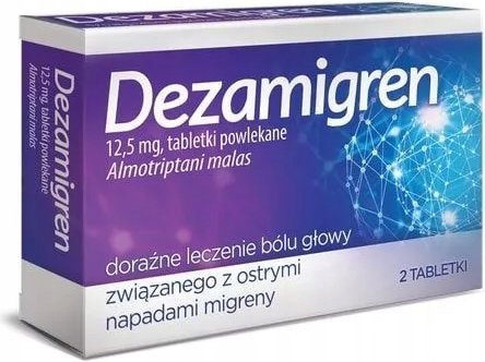 Дезамігрен – це ліки від мігрені, які належать до групи ліків, які називаються селективними агоністами серотонінових рецепторів. Діюча речовина препарату (алмотриптан) зв’язується з рецепторами серотоніну в кровоносних судинах головного мозку, викликаючи їх звуження, що призводить до зменшення запальної реакції, пов’язаної з мігренню.