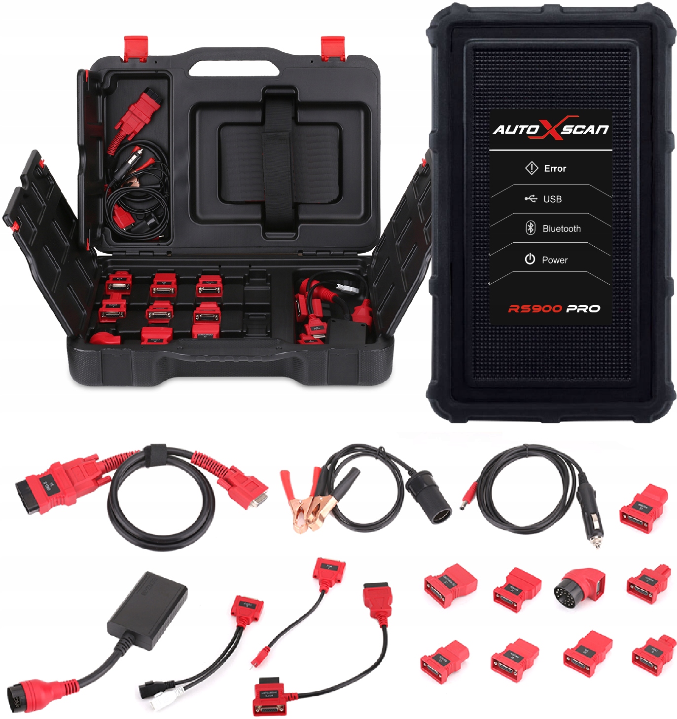 RS900 PRO - це бездротова діагностична головка, укладена в броньований корпус майстерні! Він працює з усіма ПК, ноутбуками, ноутбуками та планшетами з операційною системою Windows 7, 8 або 10! Інтерфейс дозволяє проводити бездротову діагностику через Bluetooth на відстані до кількох десятків метрів від автомобіля. Інтерфейс повністю працює польською мовою