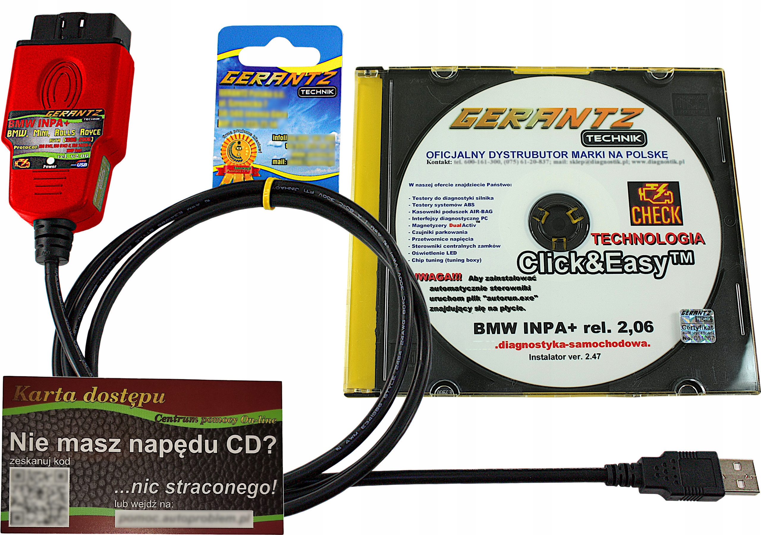 4 /B>, оснащений роз'ємом OBD2. Це відмінна та економічна альтернатива спеціалізованих послуг, таких як BMW GT1 . Завдяки USB-кабелю, який працює з транспортними засобами BMW з 1996-2006 рр. 4 Ви також можете запрограмувати іммобілайзер та виконати ряд інших вдосконалених операцій, а це означає, що інтерфейс пропонує дуже широкий спектр можливостей.inpa+ rel. 2.06 тісно пов'язаний з пристроєм BMW GT1, який використовується на веб -сайтах авторизованих брендів, що дозволяє перетворити звичайний ПК у професійний діагностичний інструмент. Це забезпечує повний контроль над усіма електронними системами транспортних засобів, виконуючи тести виконавчих компонентів, адаптацію після ремонту або відключення акумулятора та активація різних прихованих функцій, що робить його надзвичайно корисним інструментом для кожного власника або механічного BMW.