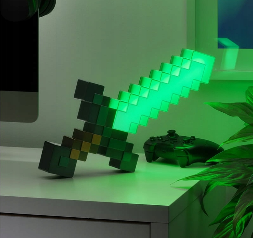 Тримайте ворогів подалі від вашої кімнати завдяки цій лампі батареї з появою diamond меч від світу minecraft ! moby відчуваю себе найкращим під обкладинкою ночі , а потім вони вирішують напасти , але це не лякає такого досвідченого гравця як ви, бо відтепер у вас завжди є правильна зброя! Упаковуючи оригінальну барвисту коробку лампу чудово підходить для подарунка t для людей, які люблять Minecraft.