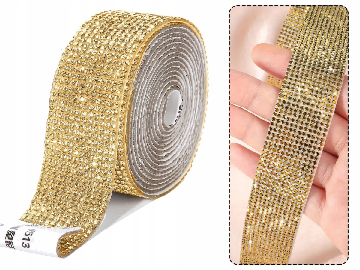 ДІАМАНТОВА СТРІЧКА З кристалами ЦИРКОНІЮ приклеєна, блискуча, 12 рядів ЗОЛОТО