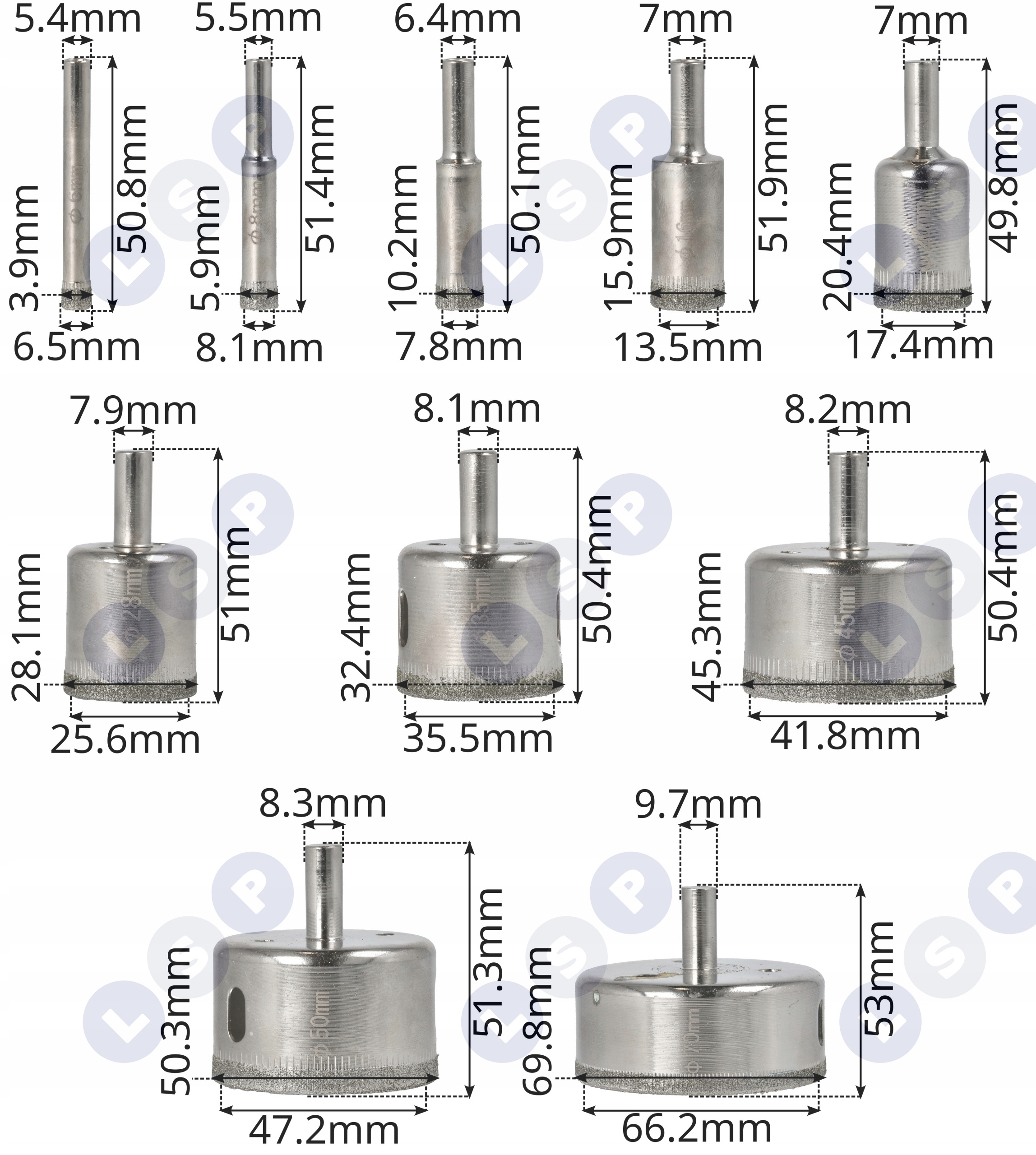 Діамантові отвори для плитки плитки скляної плитки 6 - 70 мм набір 10 шт.
