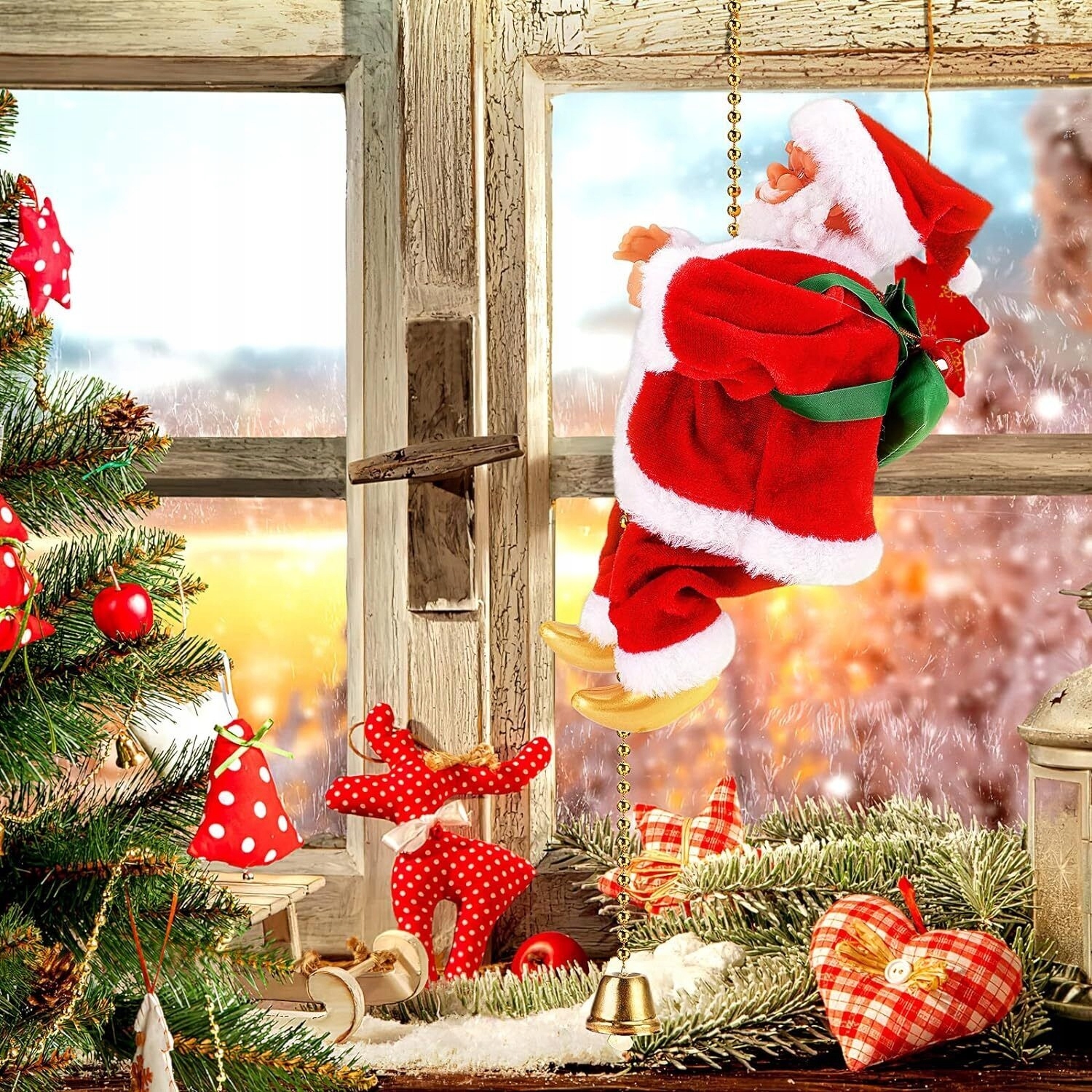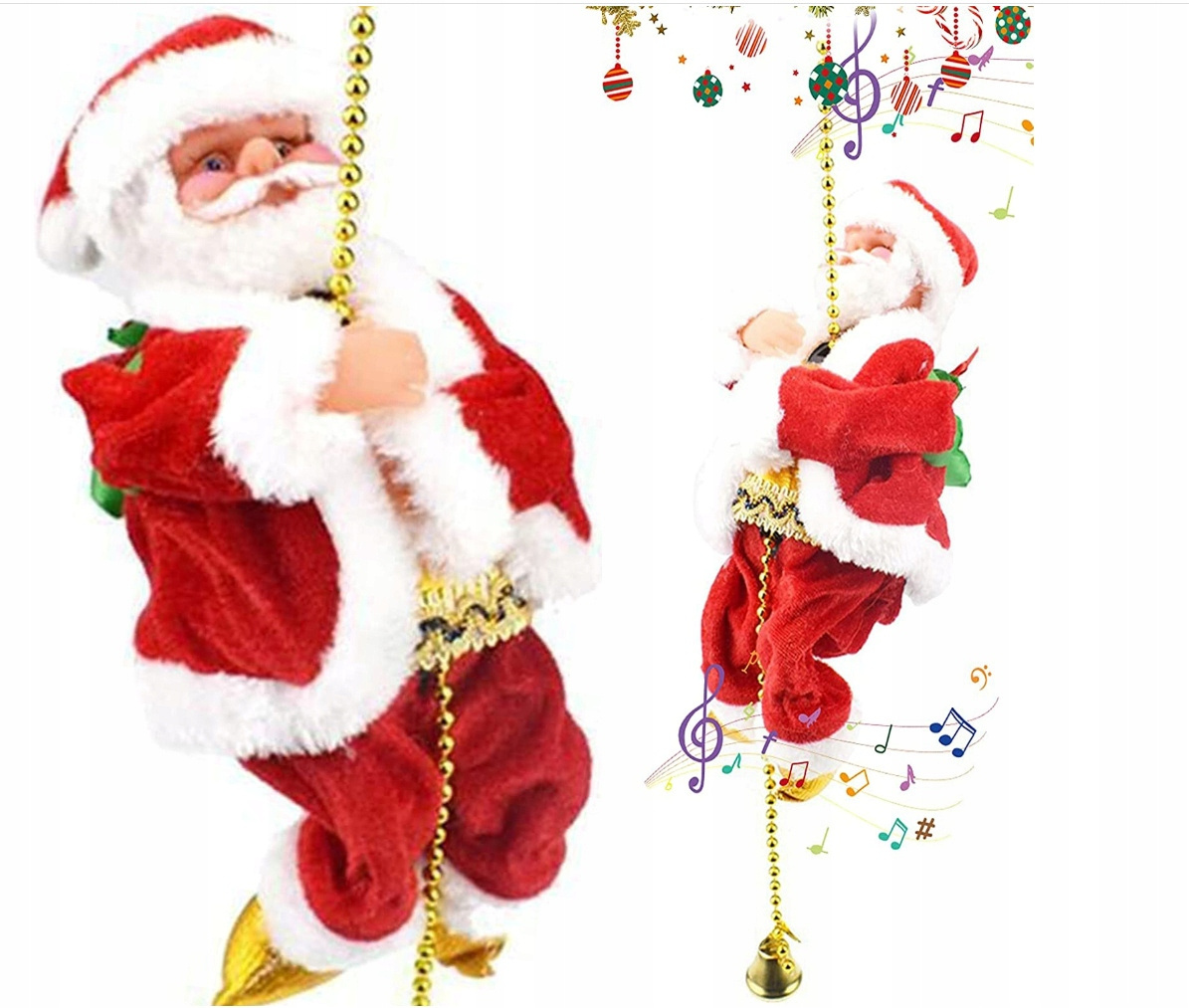 Завдяки інноваційному тяговому механізму він рухається вгору та вниз по струні, як справжній альпініст, а його різдвяна музика та світлодіодне взуття створюють унікальну, радісну атмосферу.