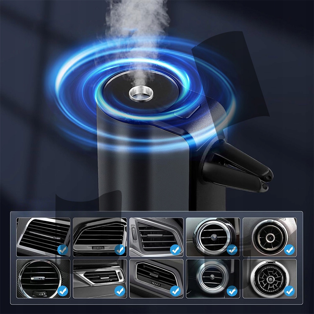 Це може бути адаптоване до більшості торгових точок у автомобілі, таких як горизонтальний/круглий/косий. Завдяки стильному вигляду та високій якості виготовлення, його можна використовувати не лише як дифузор аромату для автомобіля, але і як декоративний елемент високого класу.