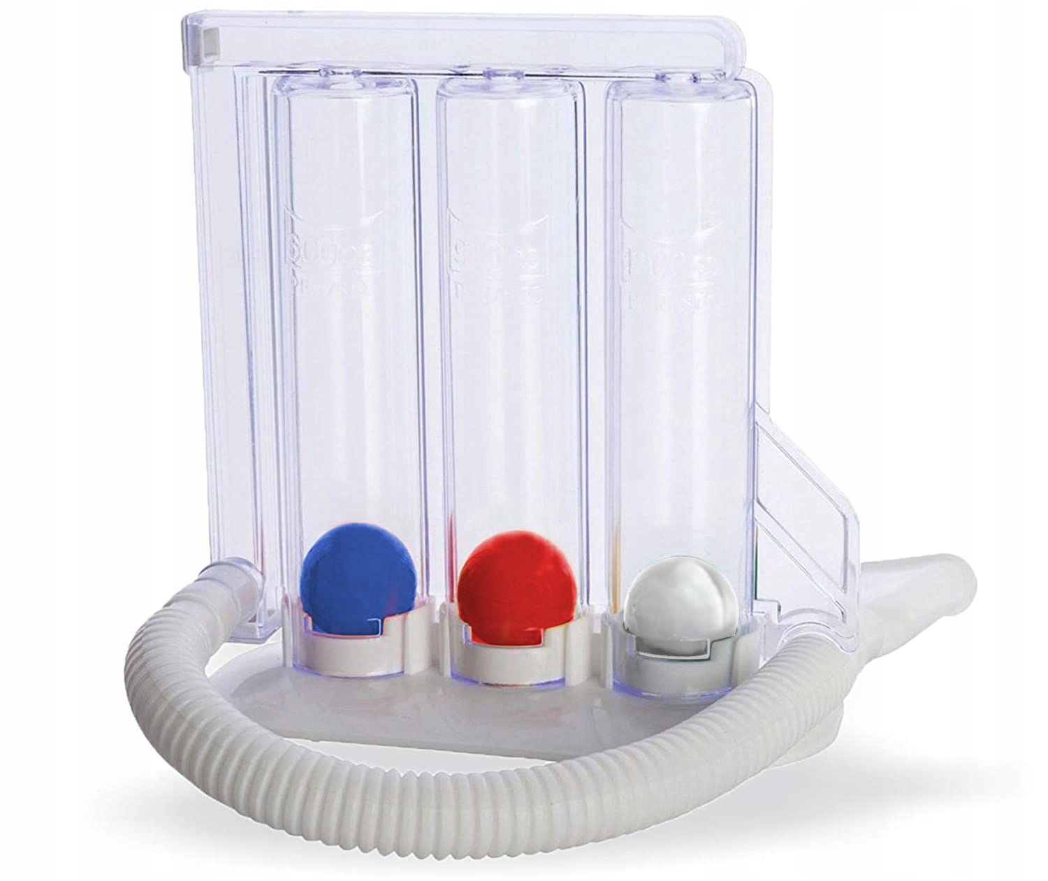 Цей дихальний апарат оснащений 3 камерами візуалізації повітряного потоку, кожна з яких містить кольорову кульку. Вони дозволяють легко візуалізувати дихання.