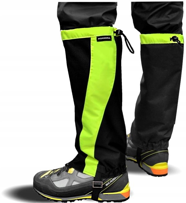 Виготовляються з двох типів тканини: міцна водонепроникна шкірозамінник (тип кордура – 100% поліестер) з традиційне картате плетіння (з просоченням внутрішньої сторони) стійке до стирання. Друга тканина – це жовта, добре помітна «вставка», розташована спереду та у верхній частині гетр – це «дихаюча» тканина, яка, завдяки спеціально підібраному кольору, добре помітна за будь-яких умов. Має 100% поліестер + ПУ мембрану: водонепроникність 10 000 мм, паропроникність до 4 500 г/м.24 год.