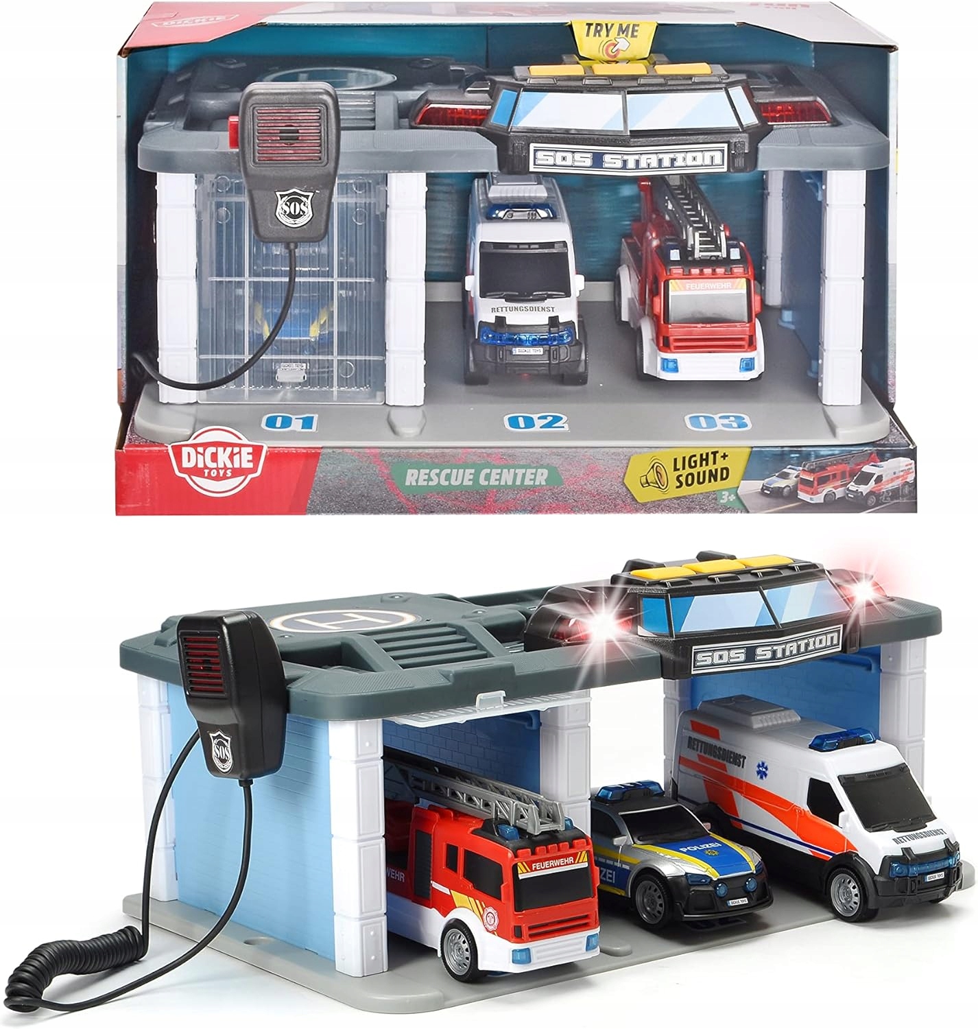 Дікі -іграшки базовий рятувальний центр SOS з ефектами та автомобілями