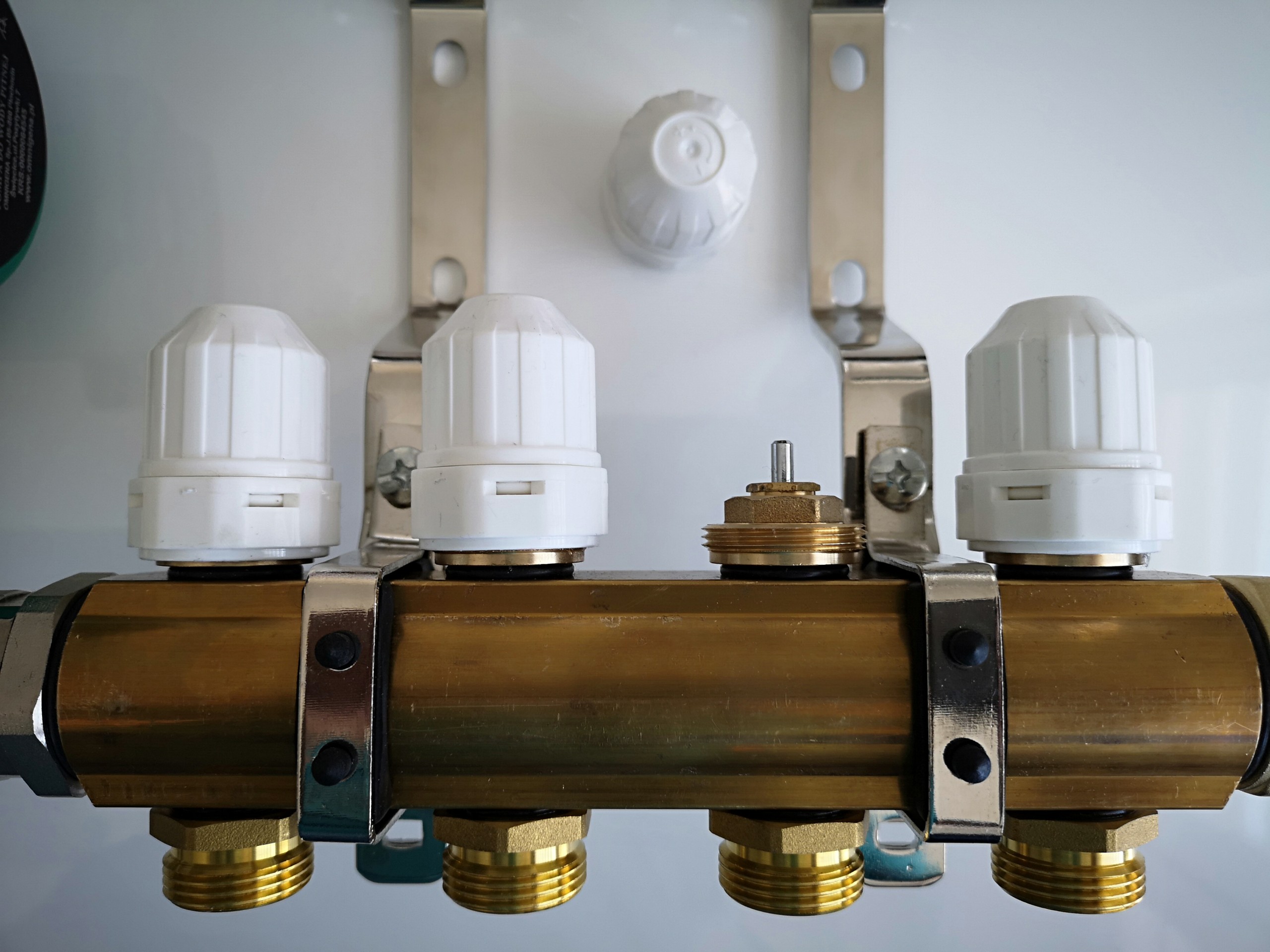 Зворотна балка з термостатичними вставками з різьбленням М30х1,5, які дозволяють установку приводів. Після встановлення приводів кожною секцією можна керувати автоматично, окремо. Біла ручка дозволяє вручну регулювати і вимикати потік