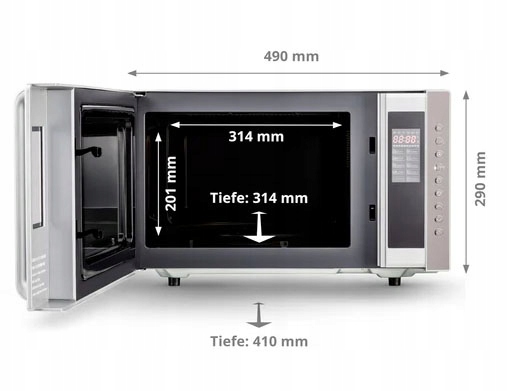 ємність мікрохвильової піч становить 23 літри , тому цей об'єм є достатнім, щоб мати можливість приготувати улюблену страву. Пристрій дуже простий у використанні. Піч виготовлена з нержавіючої сталі, завдяки якому продукт легко очистити, крім того, забруднення та бактерії не осідають на плиті так швидко. корпус також стійкий до корозії та високих температур.