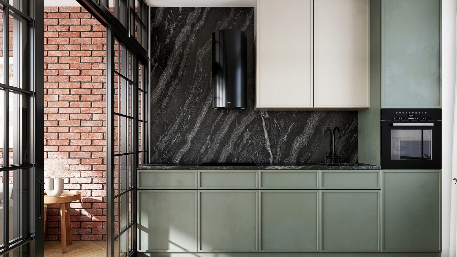 Поєднання пофарбованої в чорний колір сталі та зручного кнопкового керування дозволило нам створити витяжку з унікальним стилем і позачасовим дизайном.