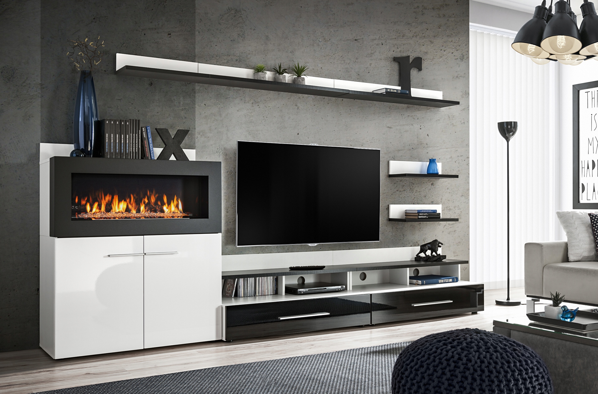 Стінка Komino - корпус: білий матовий, чорний матовий фасад: білий глянцевий ПВХ, чорний глянцевий ПВХ