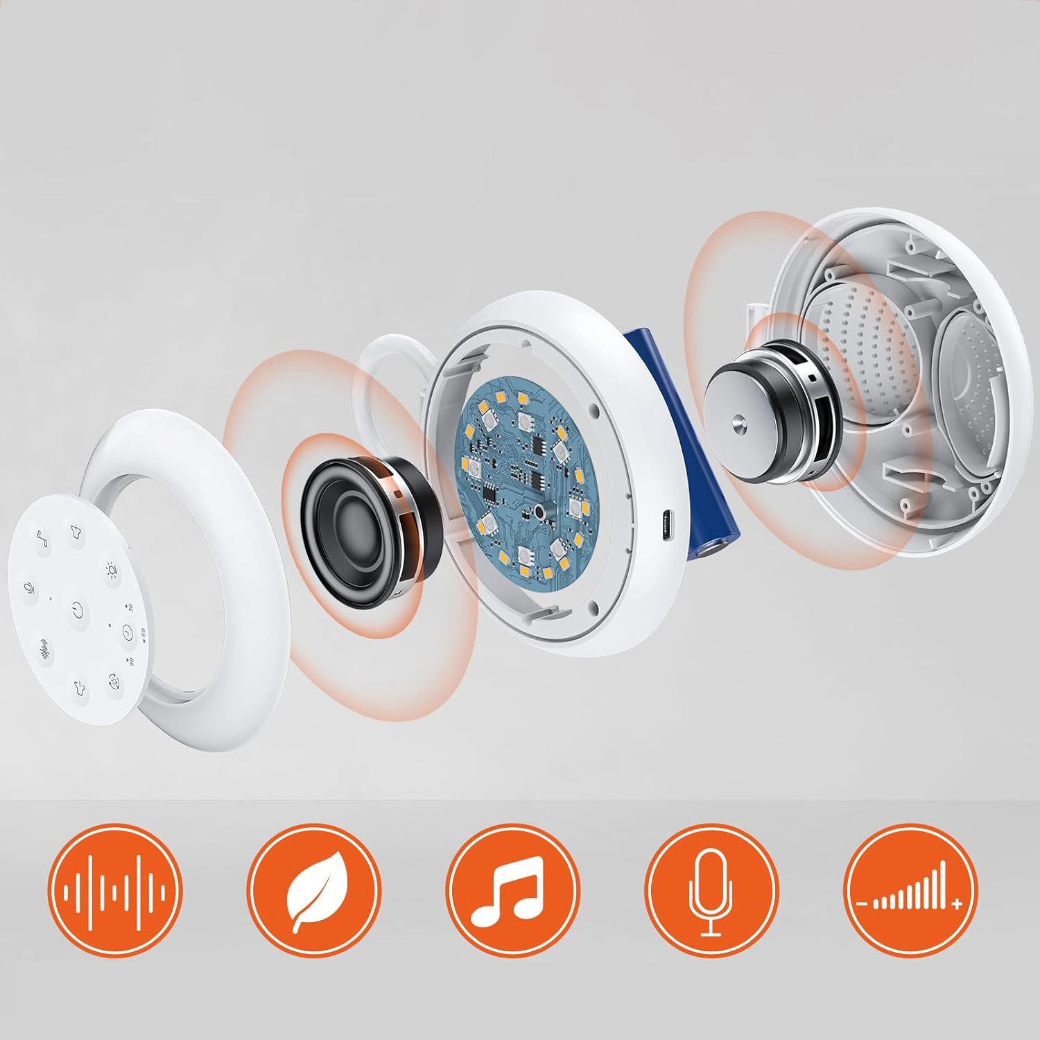 🎶 24 Заспокійливі звуки високої якості: допомога в засинанні для немовлят з 24 заспокійливими звуками, включаючи 16 білих звуків та природні звуки, 8 дитячих звуків та музики, стосується немовлят та дорослих; Наша допомога в засинанні для дітей приймає пасивний бас, щоб імітувати більш реалістичні природні звукові ефекти, забезпечує високоякісне звукове відтворення