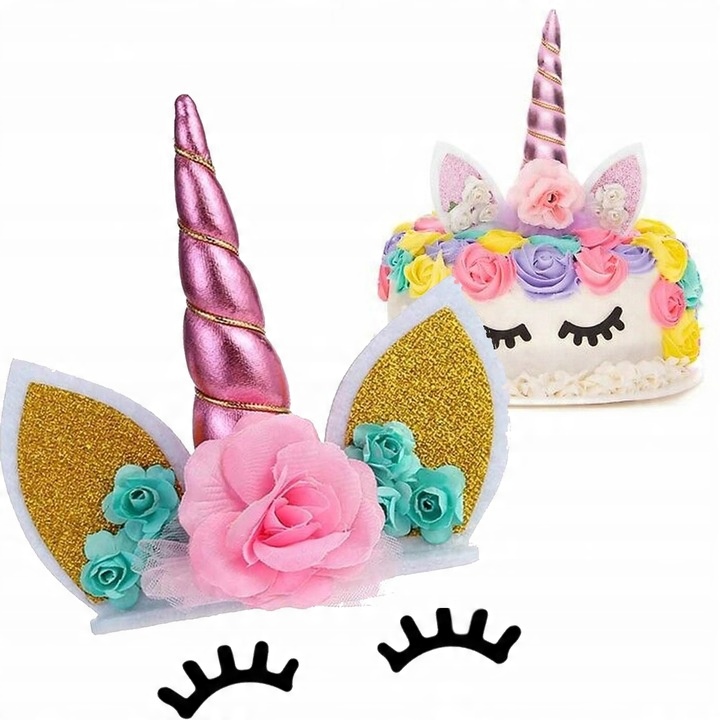 ЄДИНОРІГ ТОРТ ДЕКОРАЦІЯ РІГ ЄДИНОРІГ + ВІЇ ВЕСЕЛКА ЄДИНОРІГ