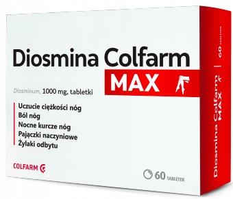 Діосміна Колфарм Макс містить діосмін, який захищає і підвищує тонус венозних судин. Препарат посилює лімфодренаж за рахунок посилення перистальтики лімфатичних судин і лімфотоку. Впливає на мікроциркуляцію, знижуючи проникність дрібних кровоносних судин і їх схильність до розриву. Зменшує периваскулярне запалення та стаз мікроциркуляції