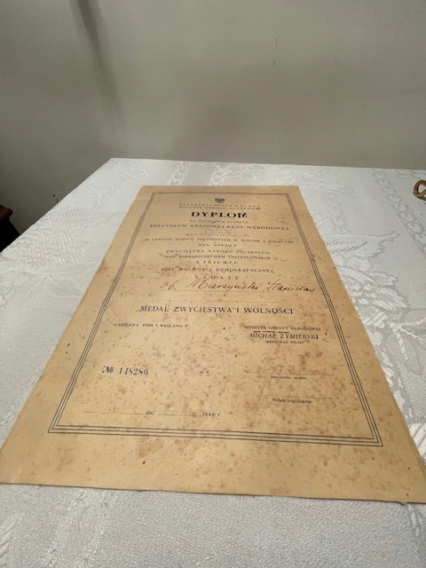 ДИПЛОМ до медалі ПЕРЕМОГИ і ВОЛІ з 1946р