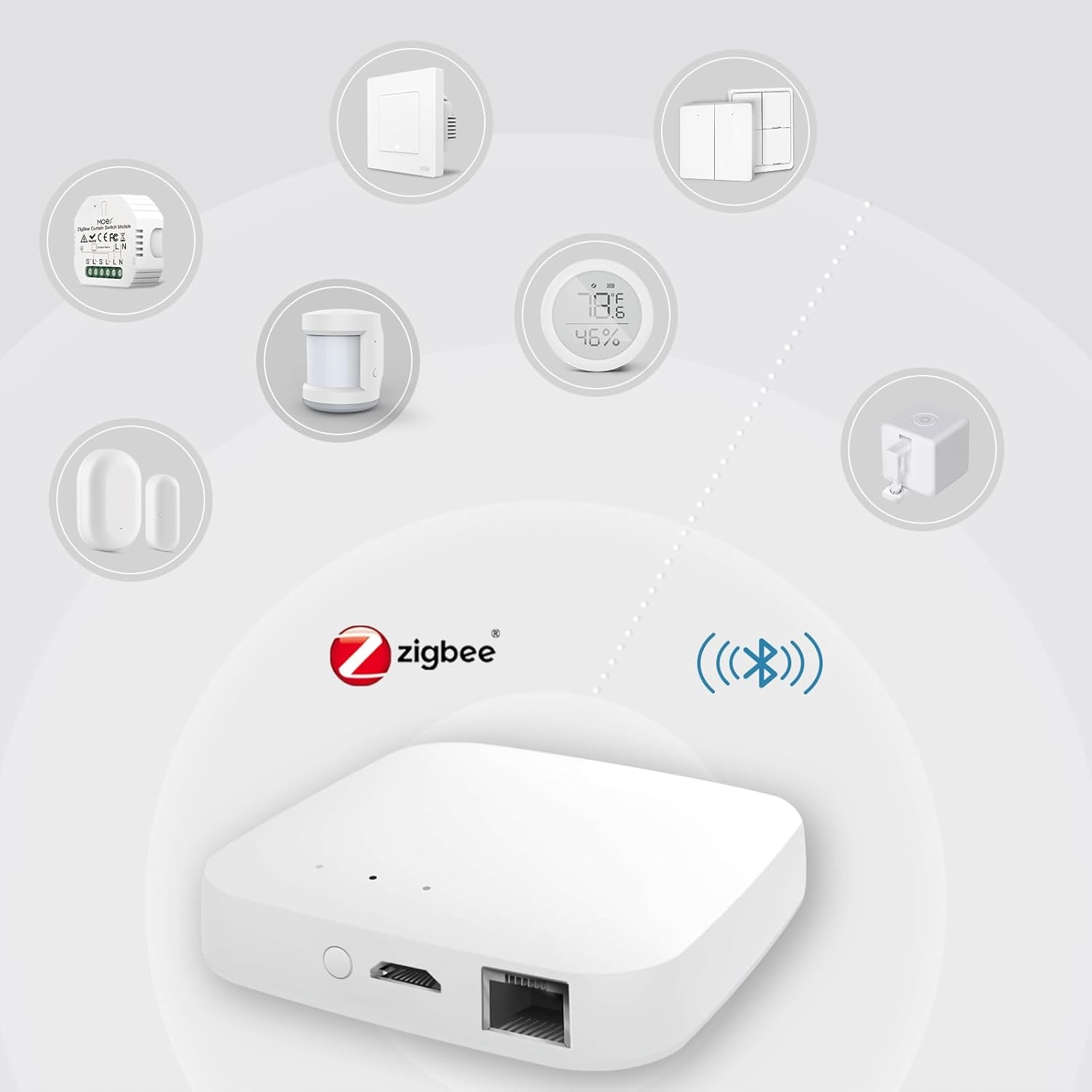 - Сумісний з багатьма режимами: Дирові ворота Moes Zigbee підтримує віддалене та групове управління інтелектуальними пристроями BLE та Zigbee, підключеними до програми Smart Life. Ви можете максимально поєднати 128 пристроїв Zigbee та BLE. Це інтелектуальний концентратор Туя, заснований на багатокруглу комунікації та інтеграції Tuya Safe SaaS.