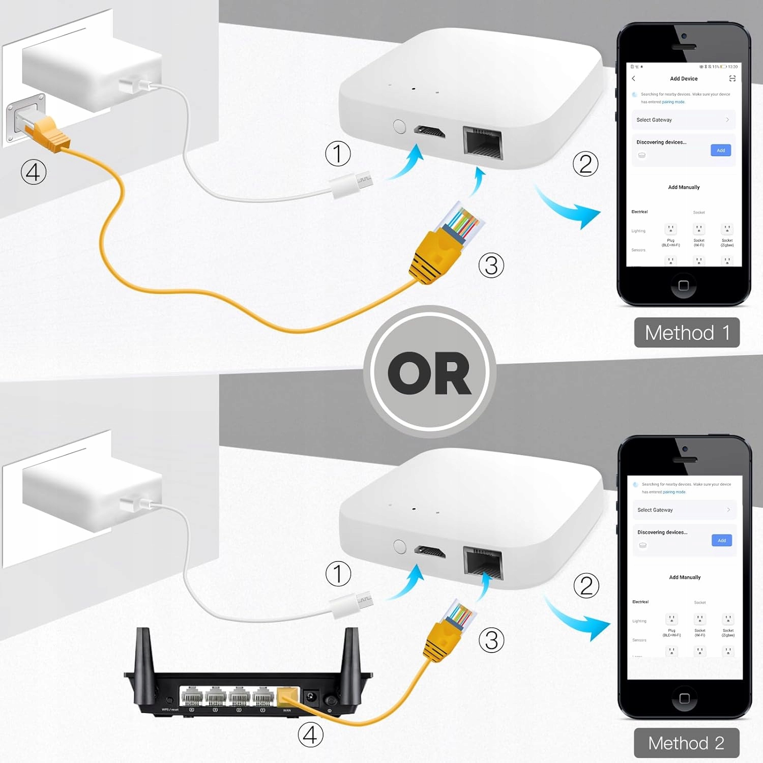 4 Використовуючи програму Tuya Smart, ви можете контролювати та групувати до 128 різних пристроїв, навіть віддалено. Хаб забезпечує стабільне Wi-Fi-з'єднання 2,4 г та BLE і сумісний з широким спектром інтелектуальних пристроїв, включаючи інтелектуальні замки, вимикачі, термостат та датчики руху. Hub Moes легко встановити і його можна встановити на стіні, що дозволяє створити безпечний та функціональний розумний будинок.