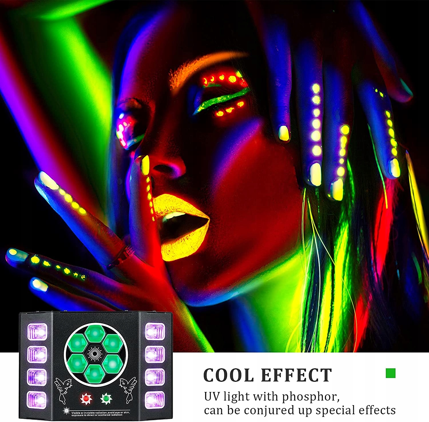 【Спеціальний стробоскоп і УФ-ефект】 Спеціальний стробоскоп і УФ-ефект складається з 8 світлодіодів УФ + білий 2 в 1, мерехтливого світла та спеціального фіолетового світлового ефекту, що робить вашу сцену чи вечірки більш несподіваними, особливо підходящими для вогнів на Хеллоуїн.