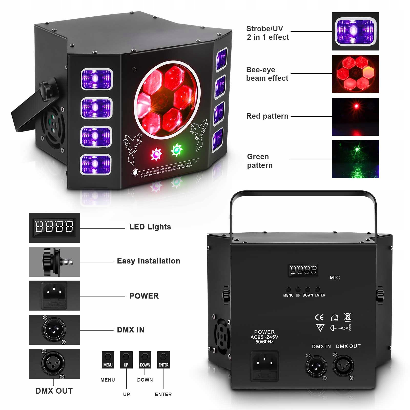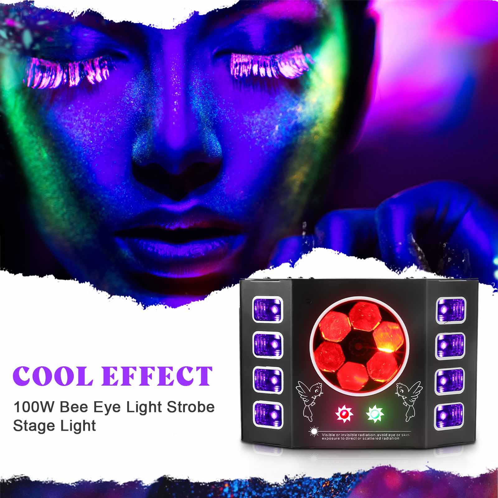 【Світловий ефект високої яскравості】 Поворотний промінь типу «бджолине око» зі світлодіодом 12 Вт RGBW 4 в 1, тоді як червоно-зелений еталонний світло становить 100 мВт і 40 МВт. Незалежно від того, який тип ефекту ви використовуєте, світлові ефекти чудові та забезпечують широке покриття.