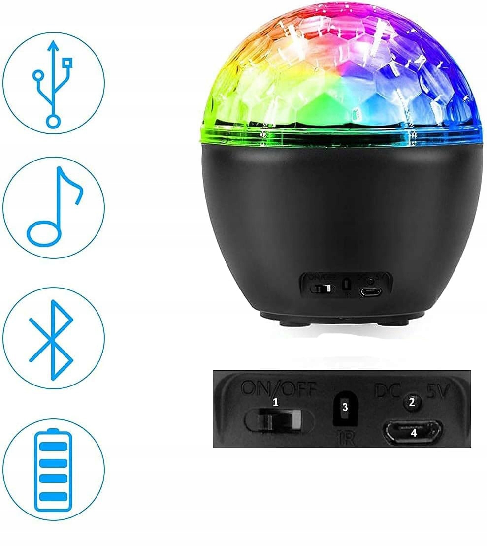 🎶♬ 【Бездротове світло для вечірок із Bluetooth-динаміком у формі диско-кулі】Це не лише музичне барвисте світло, а й нічник і бездротовий Bluetooth-динамік. Підтримує будь-який пристрій Bluetooth для відтворення музики. Бездротовий пульт дозволяє вибрати потрібний режим. Ним можна керувати через з’єднання Bluetooth або безпосередньо за допомогою пульта дистанційного керування.