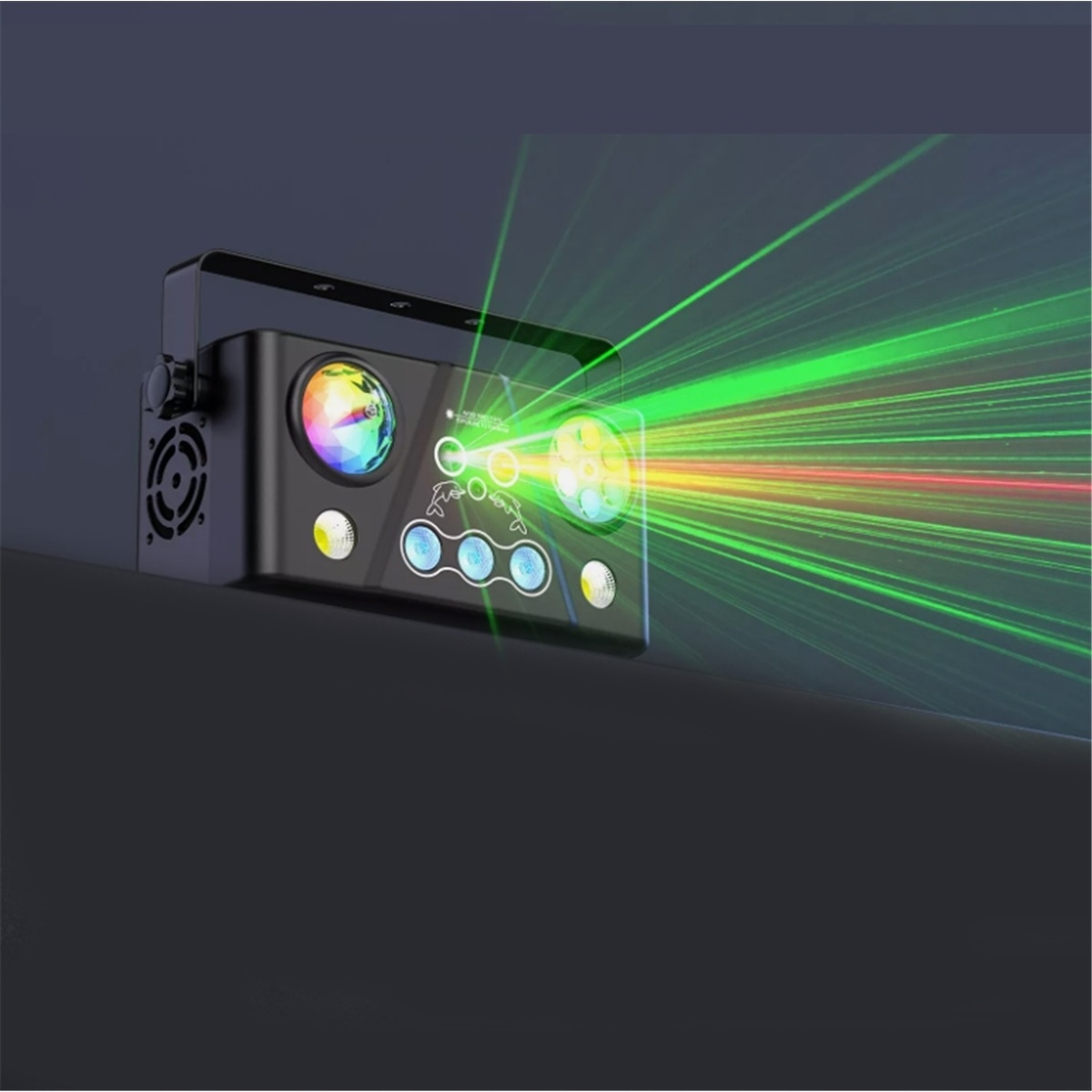 Поєднання 16 червоних і зелених лазерних візерунків з ефектом зірки промені створюють заворожуючі світлові шоу. Ідеально підходить для декору дискотеки та вечірки, створюючи чарівну атмосферу завдяки синхронізація кольорів і рухомі мотиви.