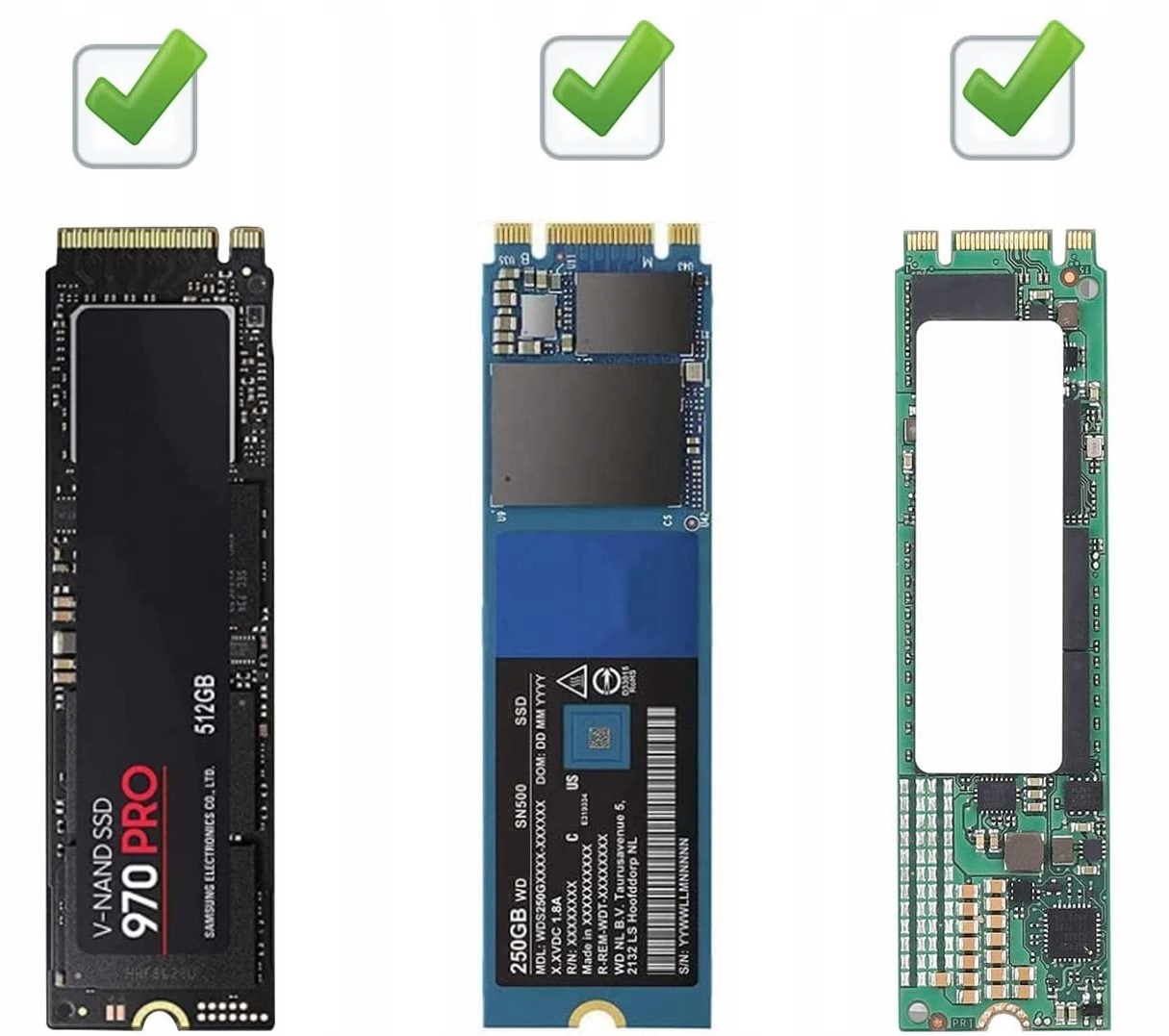 - Він сумісний із дисками M.2 з інтерфейсом SATA та PCIe (NVMe)