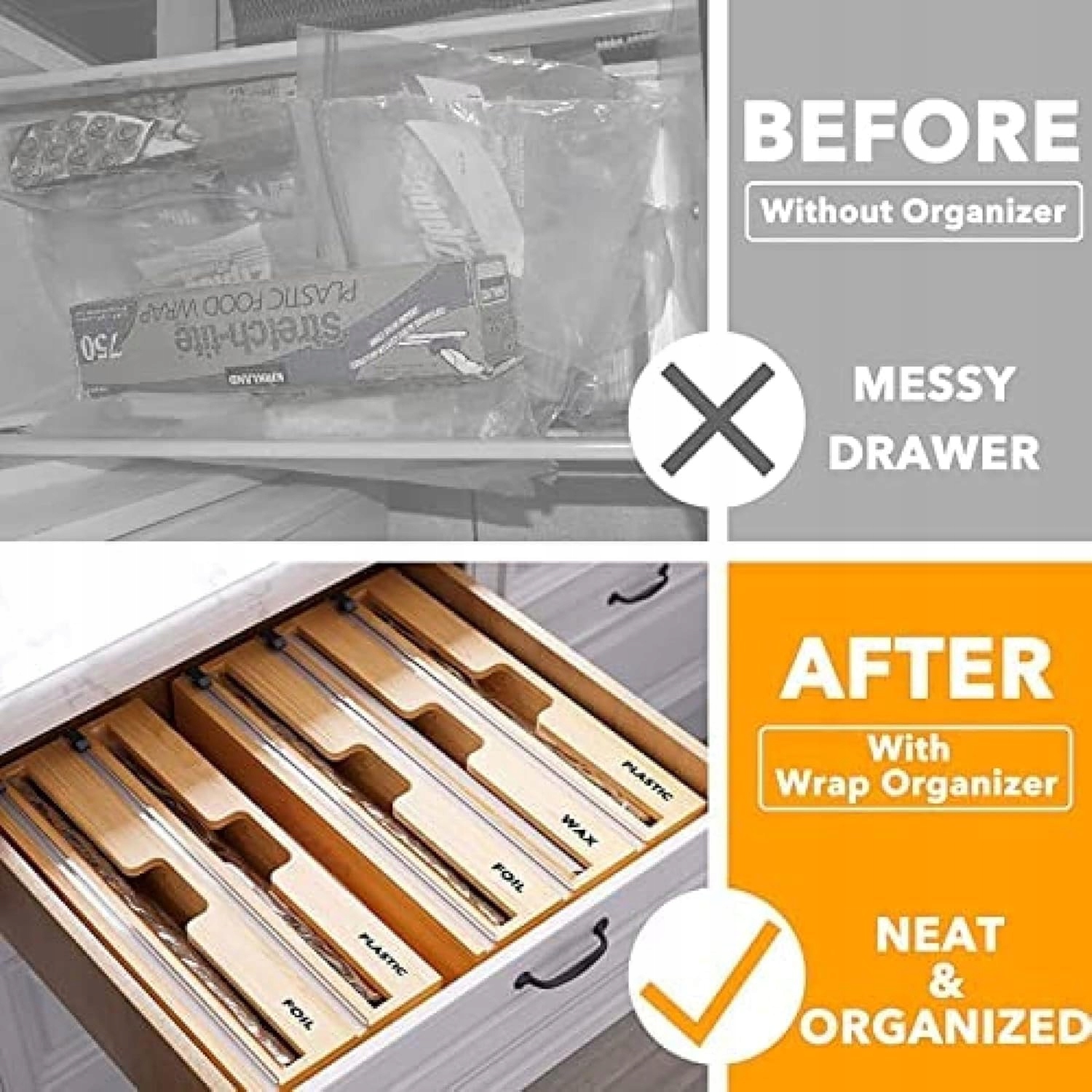 - Багатофункціональний: рулонний диспенсер для харчової плівки, фольги та кухонних рушників, а також місце для зберігання пакетів у морозильній камері, стрічки та контейнера для зав’язок пакетів або затискачів. Практичне та стильне доповнення до будь-якої кухні.