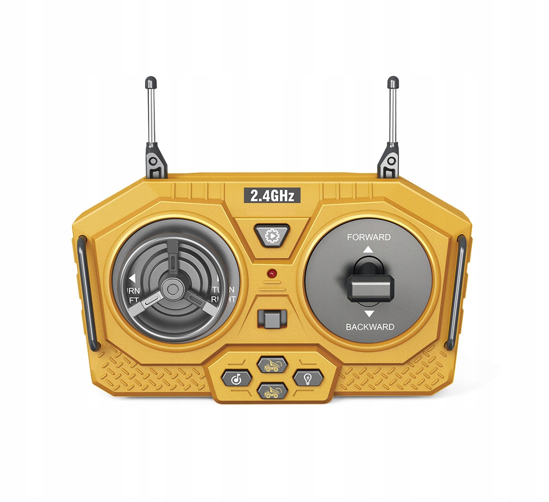 автомобіль має світлодіоди на передній частині транспортного засобу. Кольори та всі елементи ідентичні тим, що використовуються в реальних будівельних транспортних засобах. У транспортному засобі є великі шини та привід 4х4, а також звуки справжнього транспортного засобу. Звук і світло можна легко вимкнути за допомогою пульта дистанційного керування.