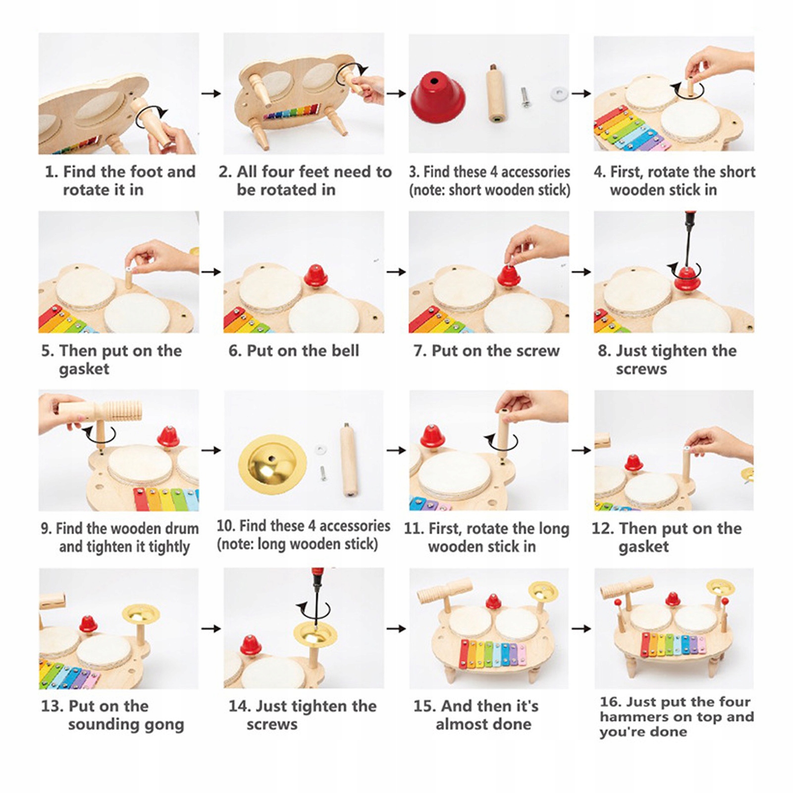5. КОМБІНАЦІЯ КІЛЬКОХ ІНСТРУМЕНТІВ: Ця музична іграшка складається з кількох інструментів. Стукіт і постукування по різних предметах створює різні звуки, завдяки яким діти можуть отримувати різні музичні враження.