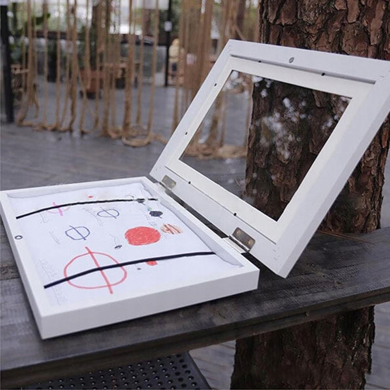 ЕЛЕГАНТНИЙ ДИЗАЙН: біла художня рамка розміром 13,78 x 10,24 дюйма ідеально підходить для малювання дітьми; Фоторамка відкривається збоку, всередині еластичні ремені, які захищають графіку від падіння.
