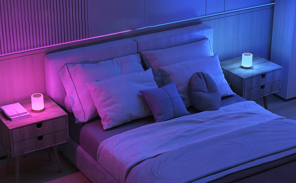 ⭐【 чутливий дотик】 - збільшує чутливість на 30% порівняно з традиційною лампою нічної дотику. Завдяки нічному освітленню ви можете легко знайти найбільш підходящу атмосферу освітлення. За допомогою сенсорної панелі ви можете увімкнути/вимкнути світло, вибрати 10 кольорів, 4 режими освітлення, синхронізацію та відрегулювати яскравість.