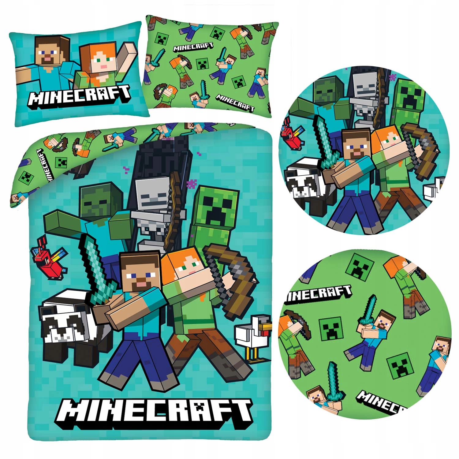 Дитяча постільна білизна 140х200 комп'ютерна гра Minecraft Мікрофібра бірюзова