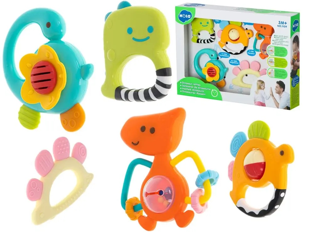 Дитячі брязкальця-прорізувачі HOLA, динозаври, набір 5 шт.