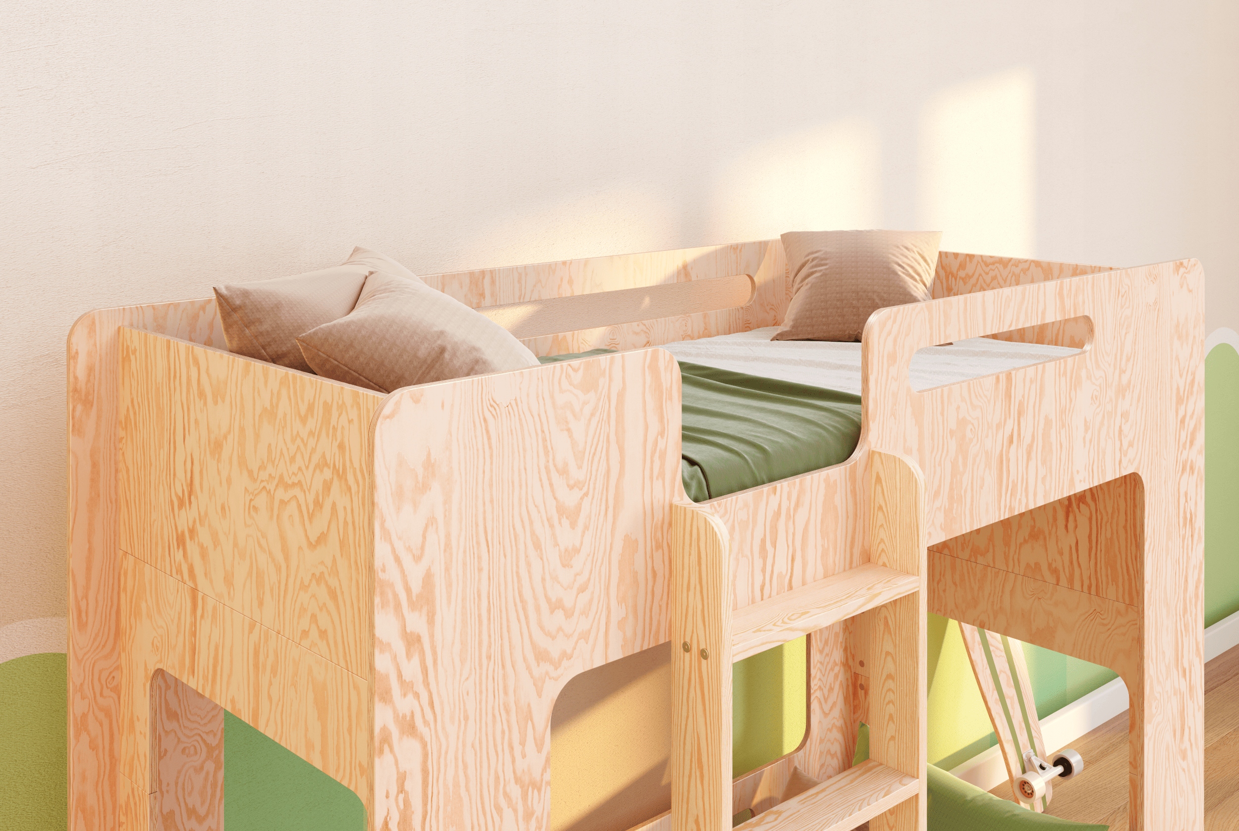 Ліжко надзвичайно комфортне, безпечне та компактний. Двоярусна конструкція дозволяє оптимально використовувати простір, залишаючи більше місця для ігор.