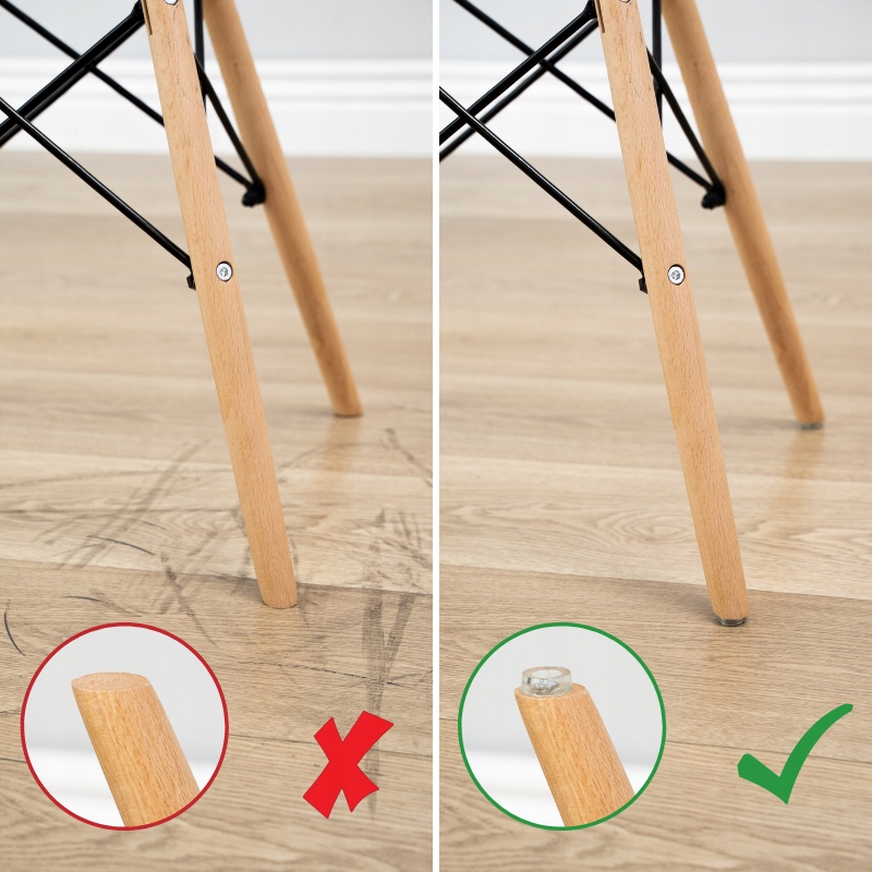 Ніжки оснащені додатковими захистами, які захищають від подряпин і пошкоджень панелей підлоги.