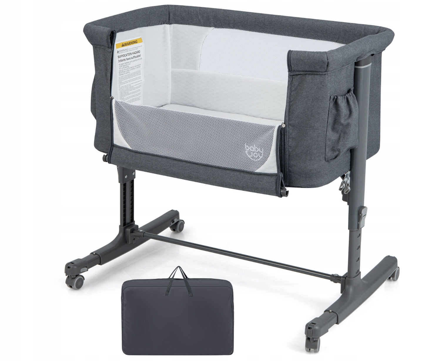 Ви легко можете взяти ліжко з собою в подорож завдяки практичній сумці для транспортування, а конструкція на блискавці дозволяє легко підтримувати його в чистоті. Це ідеальний вибір для батьків, які хочуть комфортне, безпечне та функціональне місце для сну своєї дитини.