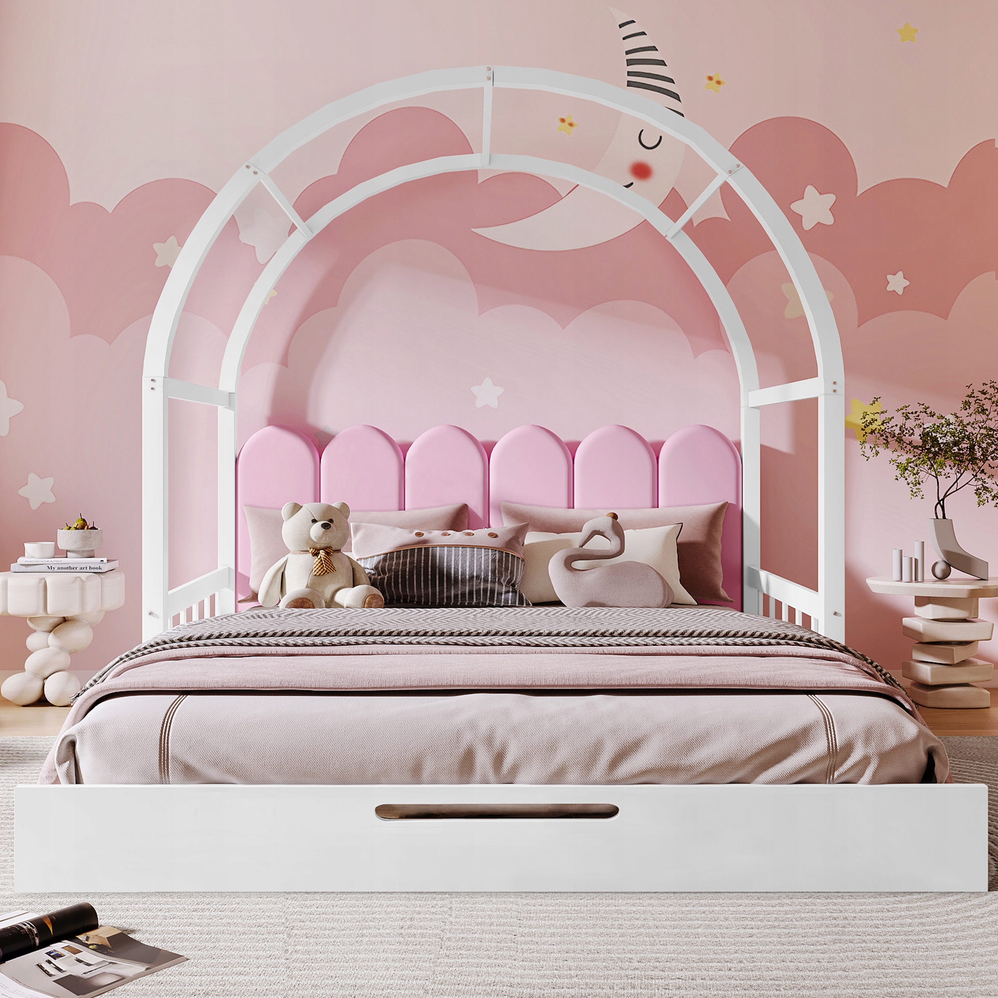 [Arched Roof]Цей шезлонг у формі дуги люблять діти, а верхня рама будиночка створює відчуття тепла та заспокоєння, що робить його ідеальним подарунком для дітей.