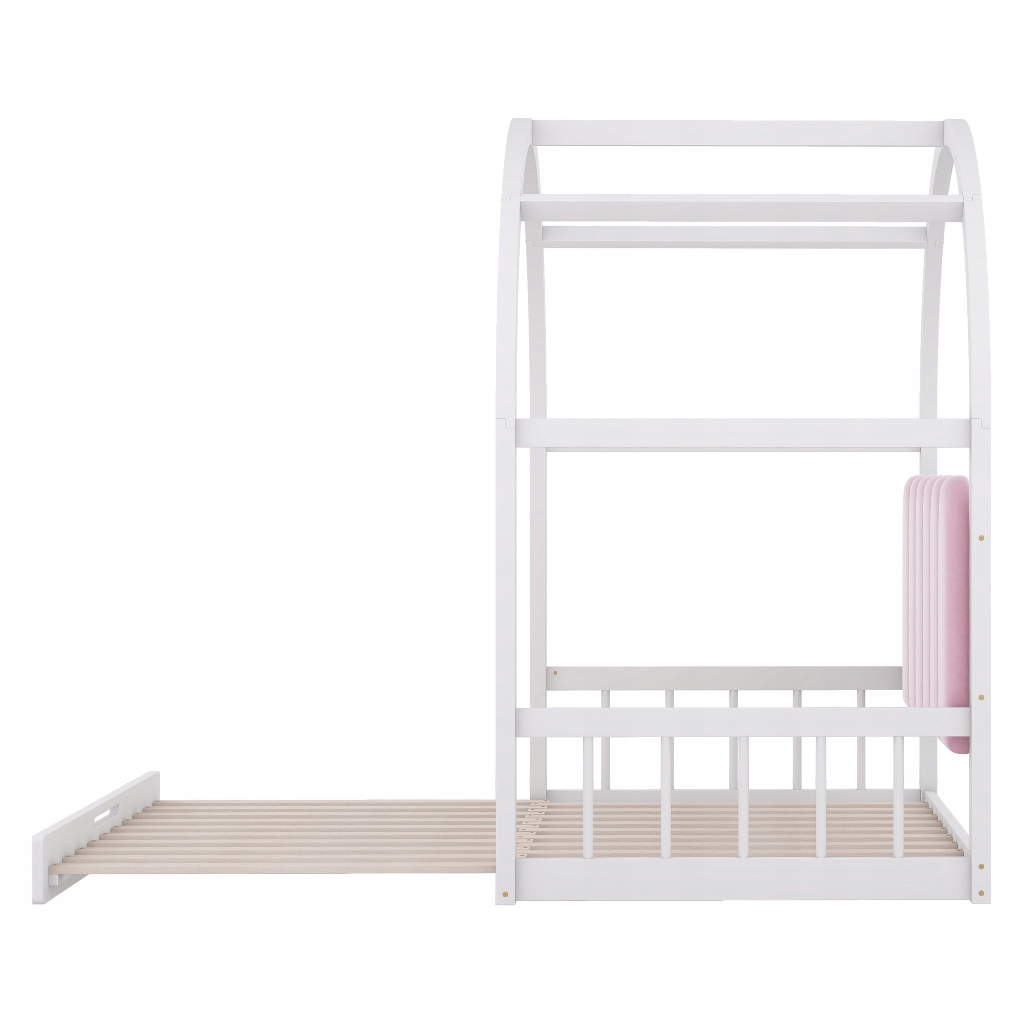 Ліжко з відкидним дахом, розсувне ліжко, дитяче ліжко, диван, двоспальне ліжко, оксамитові подушки, каркас із сосни, натуральний та помаранчевий (140x100 см та 140x200 см) Білий