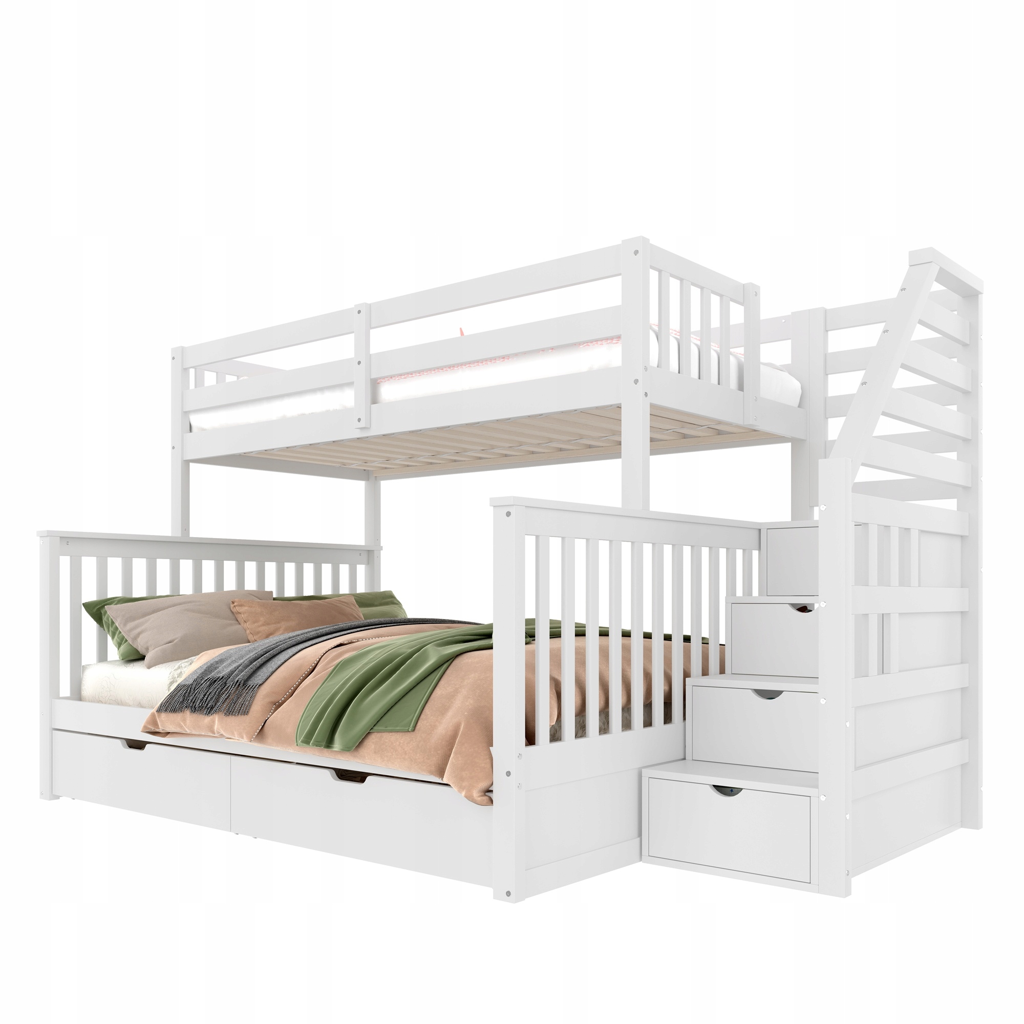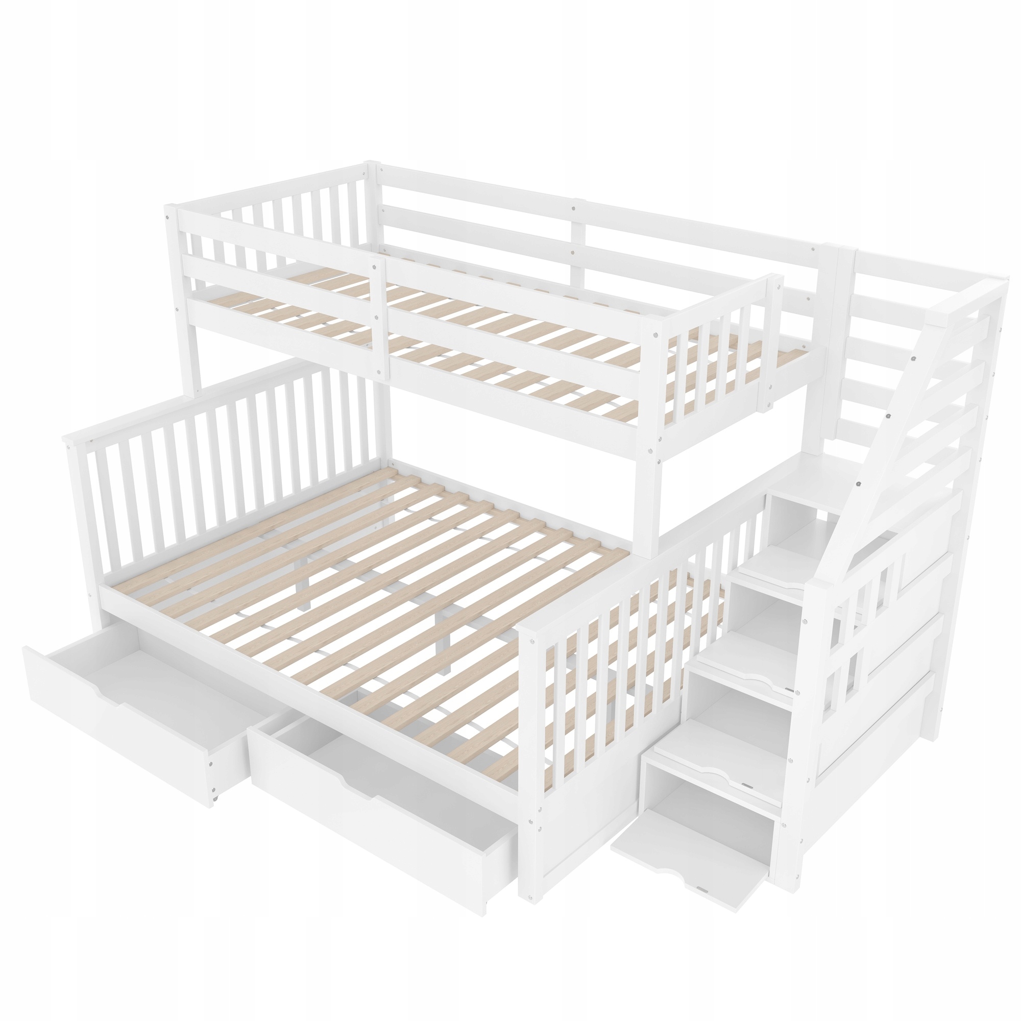 Ліжко двоярусне 90 х 200 на 140 х 200 з ящиками, місце для зберігання, без матраца, багатофункціональне, біле