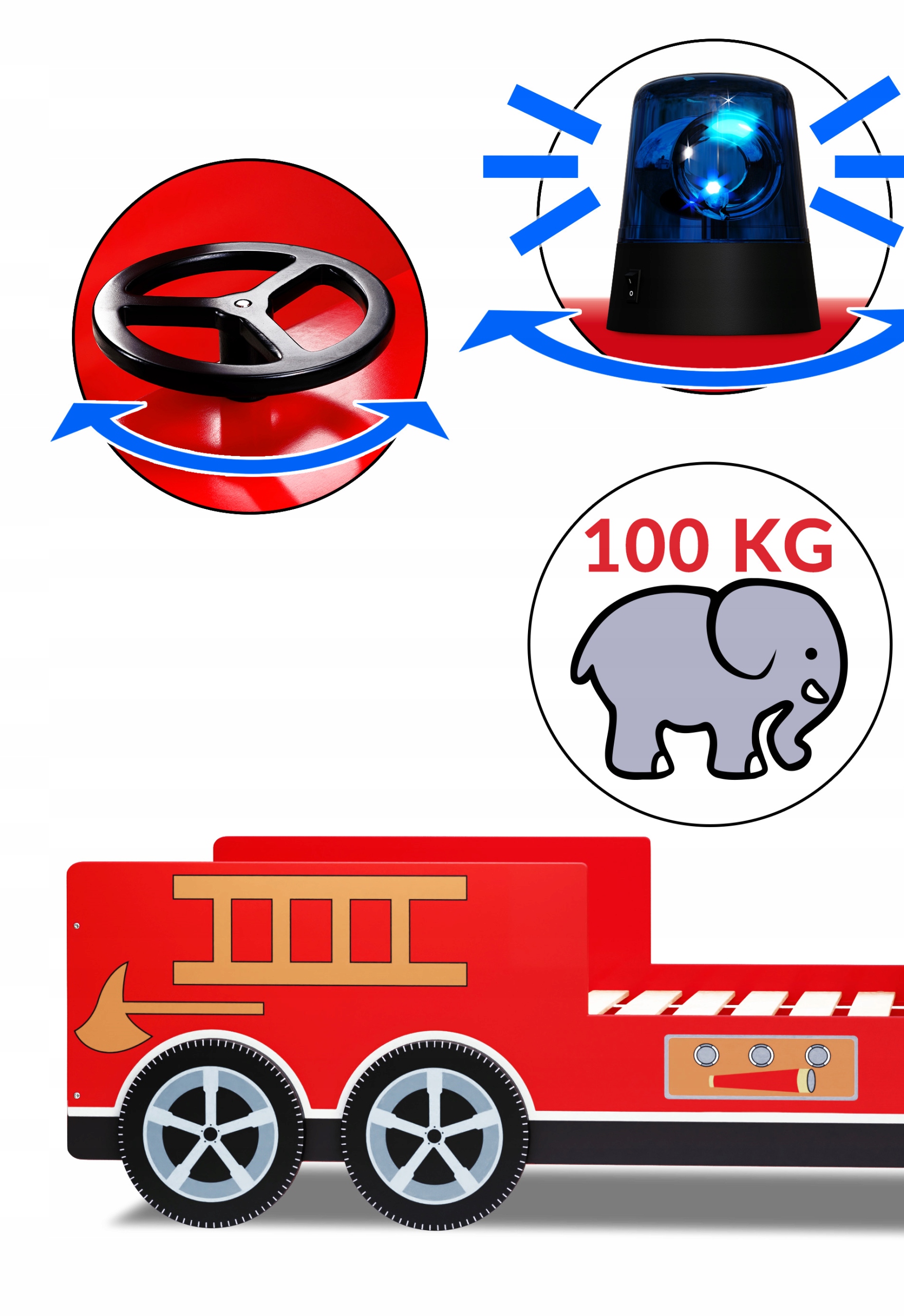 ЧУДОВА РОЗВАГА: Кольорове ліжко Fire Truck спонукає наших малюків до творчих ігор і додає їм впевненості в собі. Велике дитяче ліжко у формі пожежної машини, яка завдяки кольоровим акцентам створює веселу атмосферу в будь-якій дитячій кімнаті.