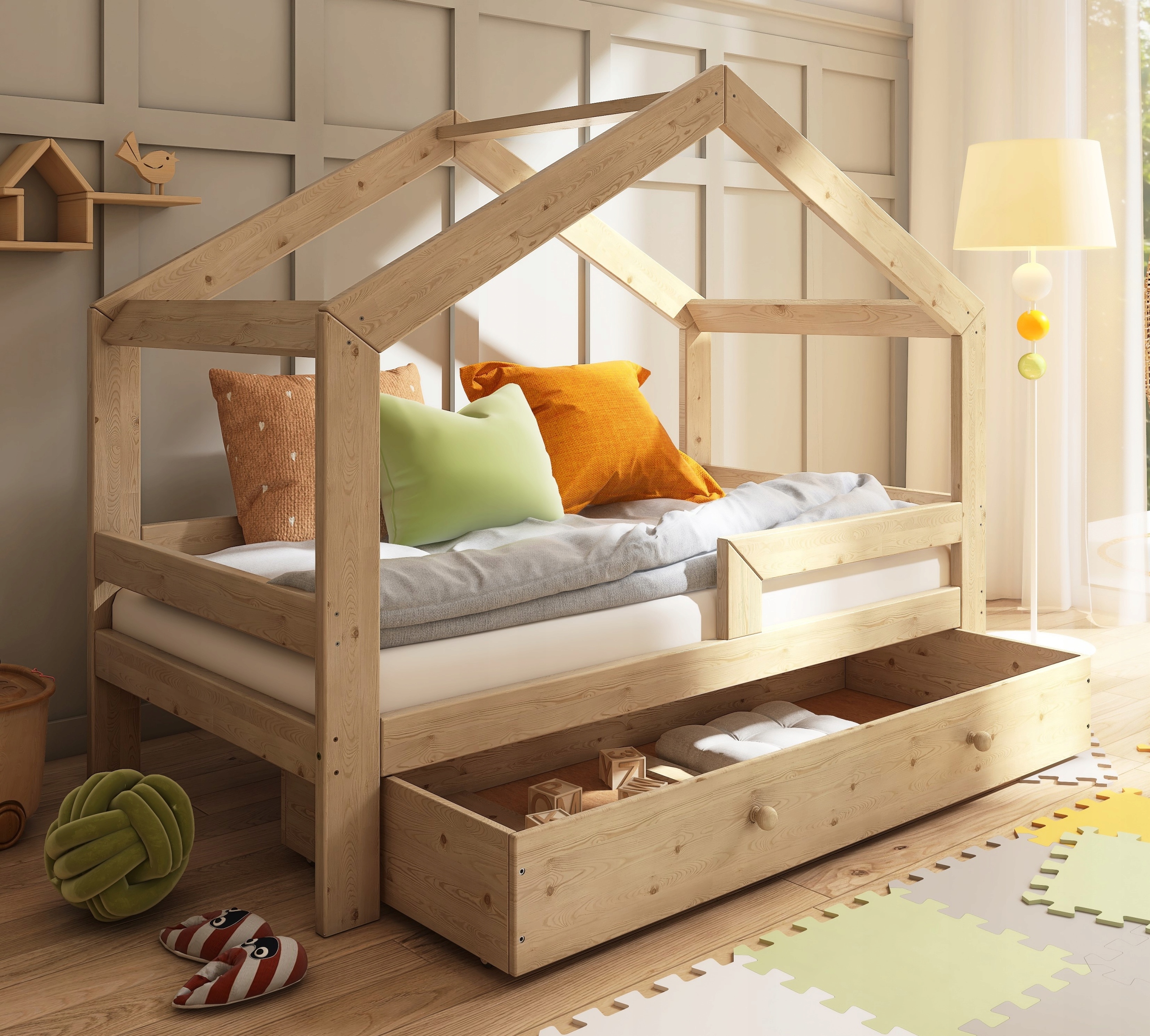 ДИТЯЧЕ ЛІЖКО З ЯЩИКОМ 80X160 ДЕРЕВ'ЯНЕ ДИТЯЧЕ ЛІЖКО RBWN