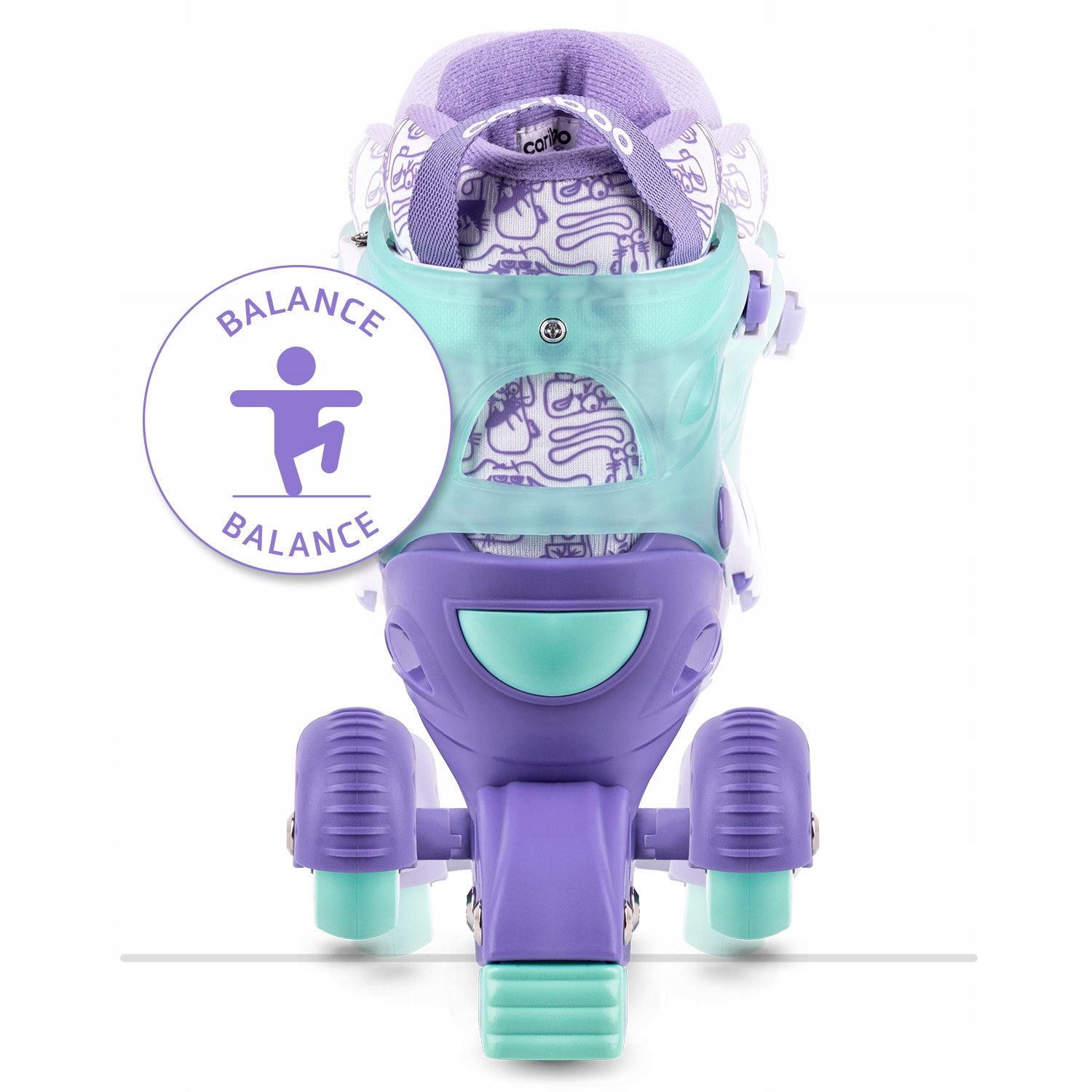 Коли малюк освоїть основи водіння, бічні колеса можна зняти. Тоді маленький користувач зможе спробувати свої сили на класичних роликових ковзанах. Кожен батько знає, як швидко ростуть діти, тому роликові ковзани Cariboo мають просту у використанні систему регулювання розміру. Просто натисніть одну кнопку, а потім встановіть відповідну довжину підошви взуття. Таке рішення дозволяє точно підігнати розмір роликових ковзанів під стопу дитини. Завдяки цьому спорядження росте разом з дитиною, тому Step One прослужить довше одного сезону.