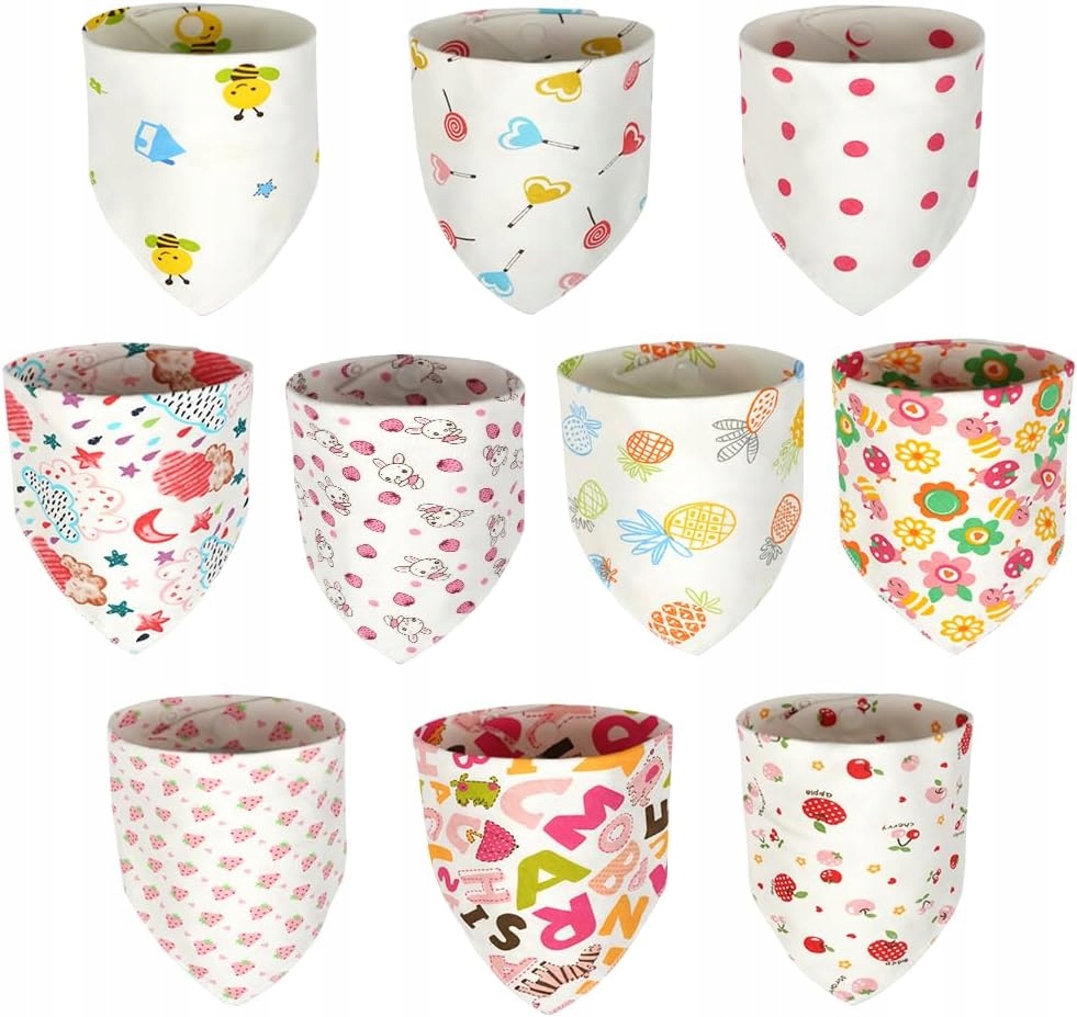 ②✨ 【Суперпоглинаюча тканина】 Трикутний дитячий рушник виготовлено з м’якої та зручної чистої бавовни для захисту чутливої шкіри дитини. Слиняний рушник із 10 штук має 10 видів кольорів, він модний, легкий, м’який і насичений кольорами. Він використовується не тільки для слиновиділення та прорізування зубів у немовлят, але також може бути використаний як стильне доповнення до вашого повсякденного життя.