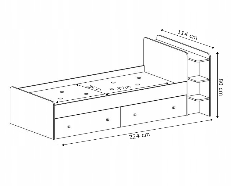 • ліжко 12 (розміри: 224 / 80 / 114 см) - 1 шт.