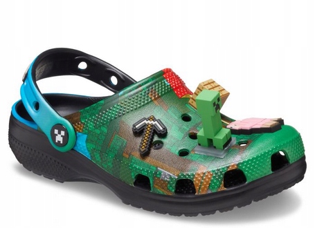 - Дизайн, натхненний Minecraft: шльопанці мають мотиви, натхненні ігровим світом, зокрема ексклюзивні шпильки Jibbitz із зображенням персонажів Minecraft